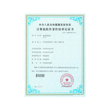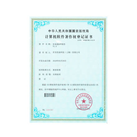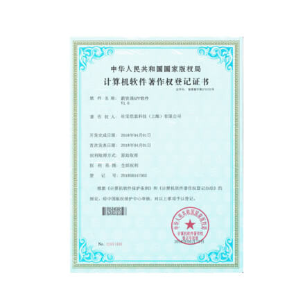 中华人民共和国国家版权局计算机软件著作权登记证书